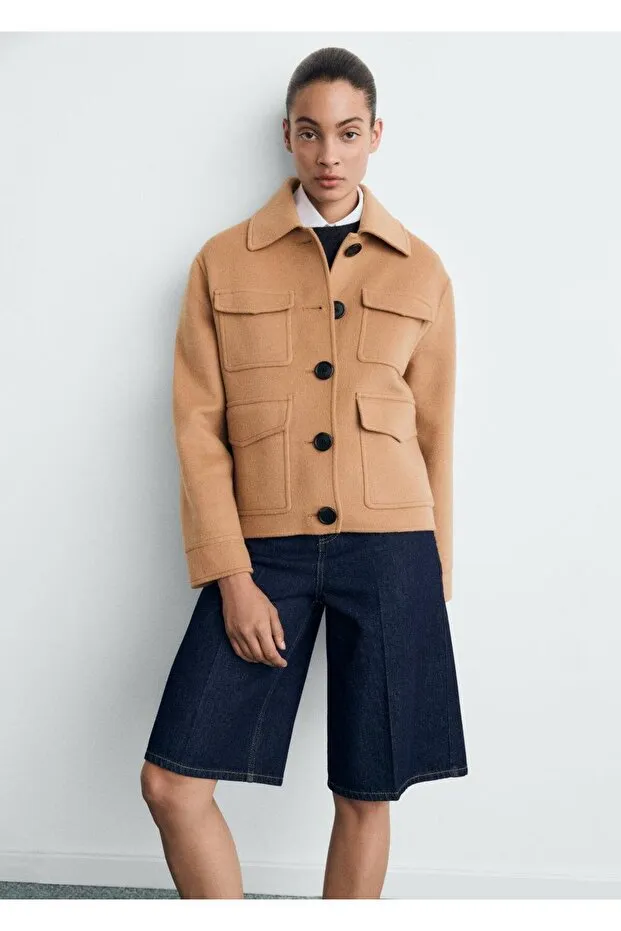ژاکت پشمی جیبدار MANGO (قهوه ای)