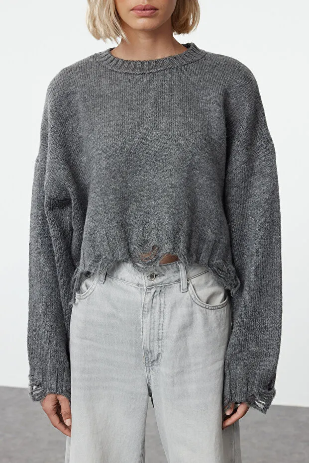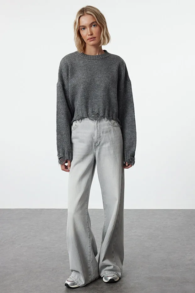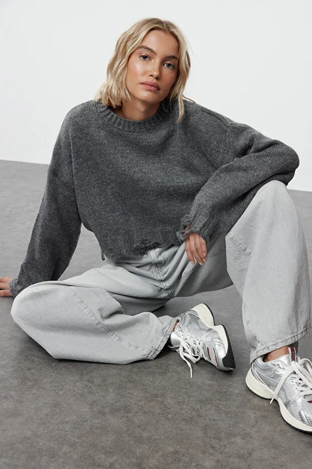 ژاکت بافتنی نرم و طرح پهن Trendyolmilla (طوسی)